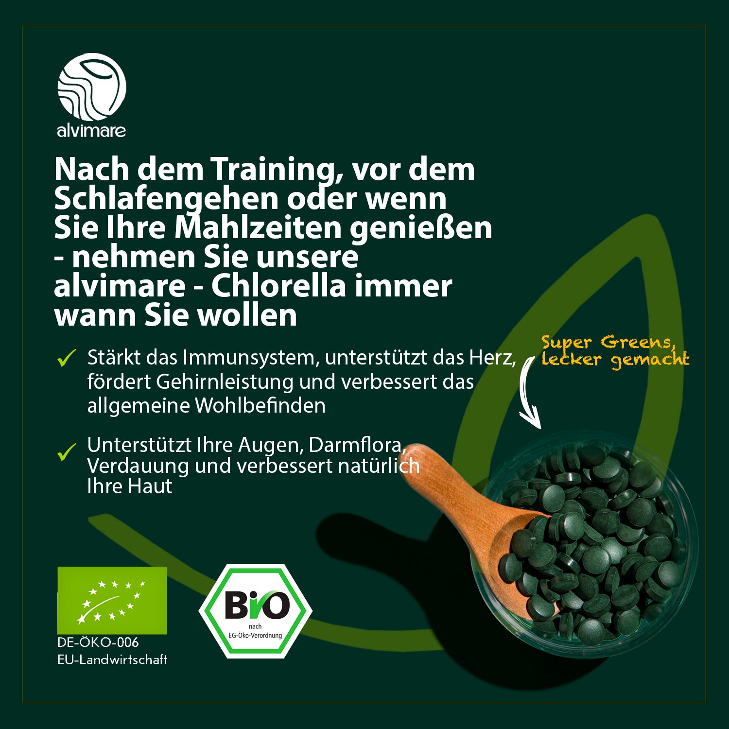 Suchen Sie nach einer Möglichkeit, Ihre Gesundheit zu unterstützen, Ihr Immunsystem zu stärken und Ihren Körper nachhaltig zu entgiften? Chlorella in Tabletten von Alvimare ist ein biologisches Superfood, das natürliche Entgiftung und wissenschaftliche Erkenntnisse miteinander vereint, um Ihnen den perfekten Ausgleich zu bieten.